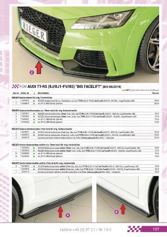 - Y 00055144 s RIEGER Heckschürzenansatz seitlich (19mm hoch), rechts, Audi TT-RS (8J/8J1-FV/8S) bis Facelift (05/2016 - 08/2018), Coupé/Roadster, ABS 44,00