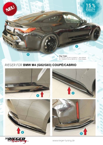 3 5 Orig. Felgen VA 10,5x20 ET 20 mit 275/30-20 + 3mm Distanz HA 10,5x20 ET 20 mit 285/30-20 + 10mm Distanz RIEGER FÜR BMW M4 (G82/G83) COUPÈ/CABRIO 3 4 6 5 www.rieger-tuning.de