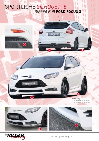 SPORTLICHE SILHOUETTE RIEGER FÜR FORD FOCUS 3 7 7 5 5 1 Wolf-Racing VA 9,0Jx20 ET 40 mit 235/30-20 HA 9,0Jx20 ET 40 mit 235/30-20 3 2 www.rieger-tuning.de