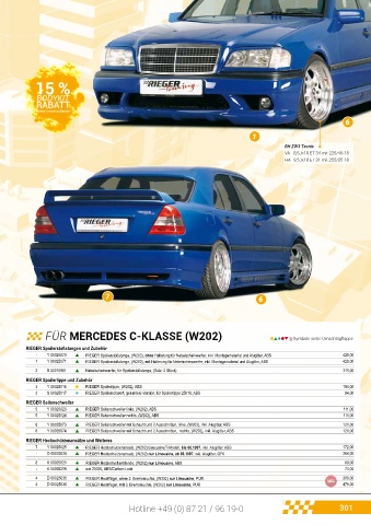 1 Y 00025071 ▲ RIEGER Spoilerstoßstange, (W202), mit Halterung für Nebelscheinwerfer, inkl. Montagematerial und Alugitter, ABS 429,00